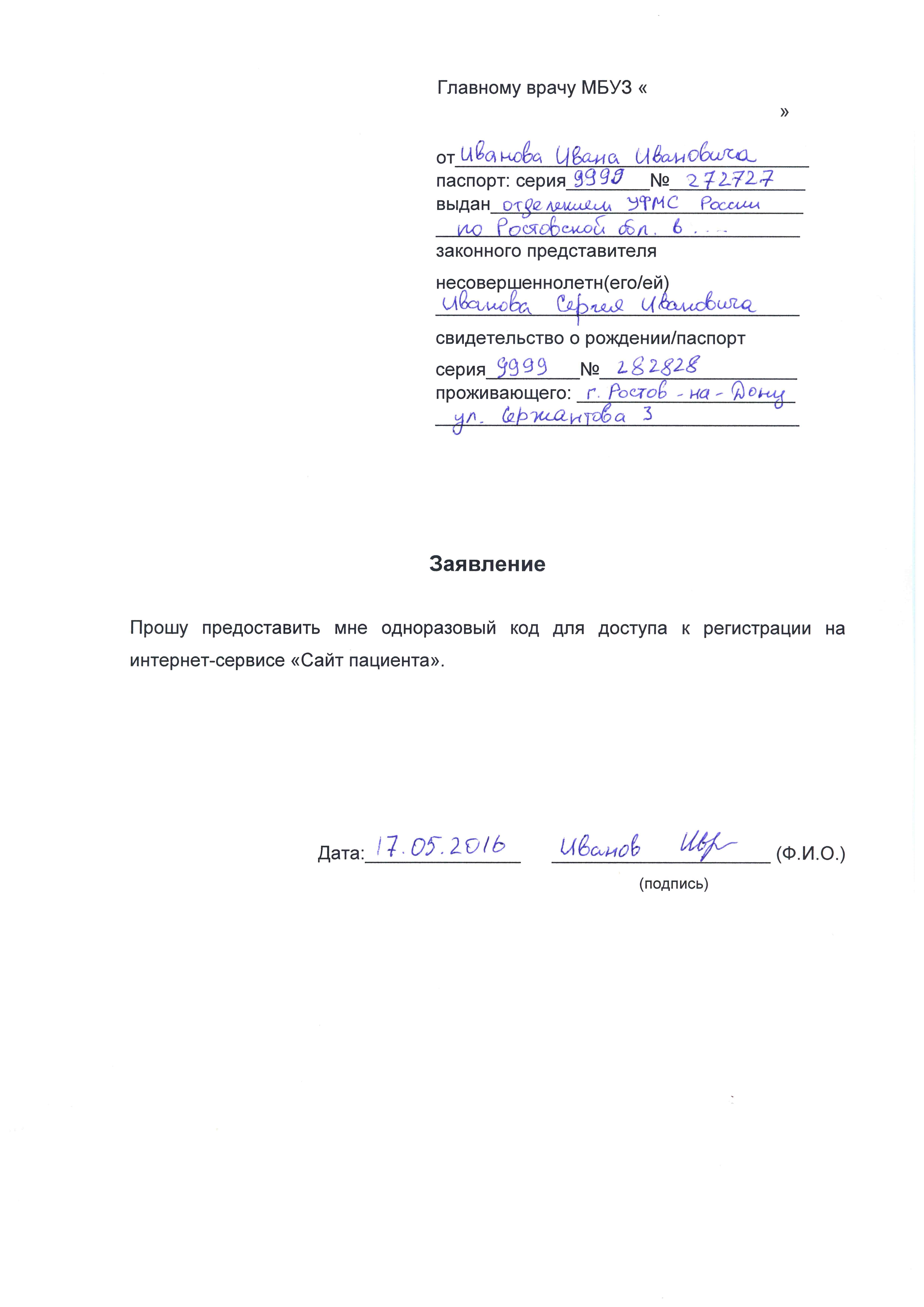 2) Обратиться в свою поликлинику, имея при себе заявление, паспорт родителя или законного представителя, согласно статьи 52 ГК, свидетельство о рождении ребенка, полис обязательного медицинского страхования ребенка для получения кода безопасности